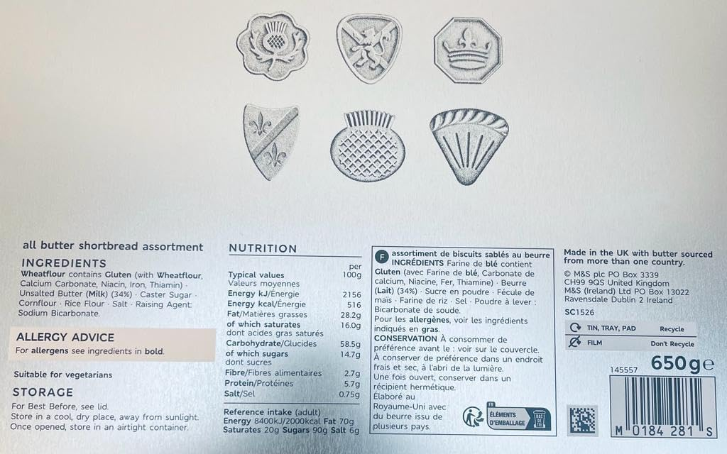 Generic M&S All Butter Shortbread – Petticoat Tails Tin 650g
