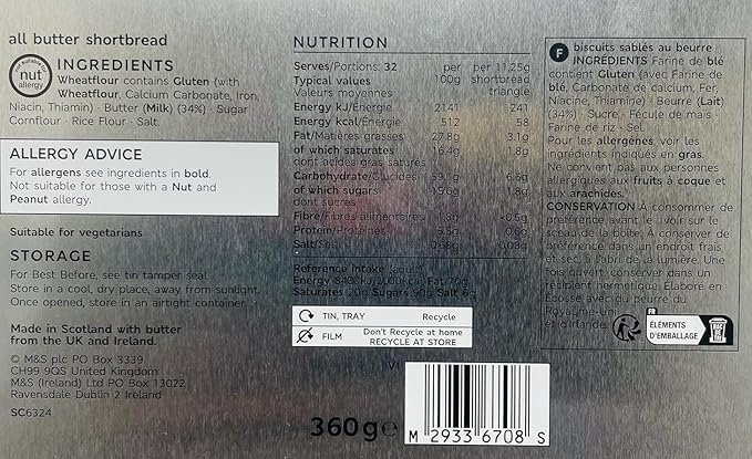 Each Petticoat Tails shortbread is crafted with premium butter, delivering a rich, buttery taste and crisp texture. This classic 650g tin showcases the exceptional quality of M&S and is elegantly packaged in a Premier Life Store gift box, making it perfect for festive celebrations or special